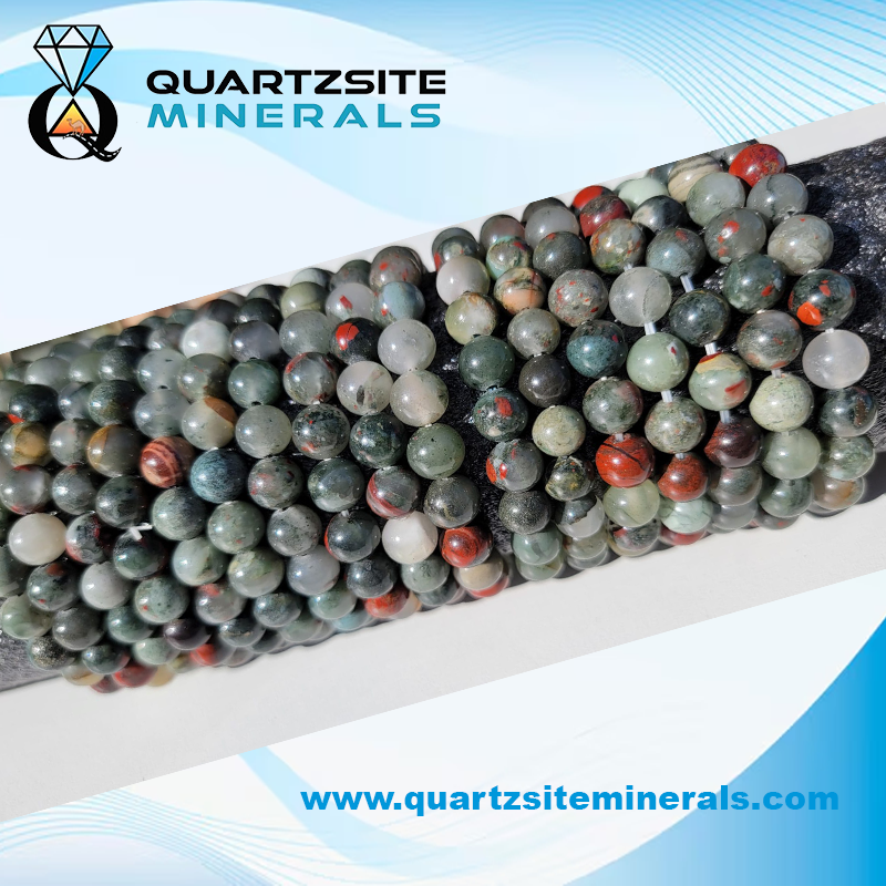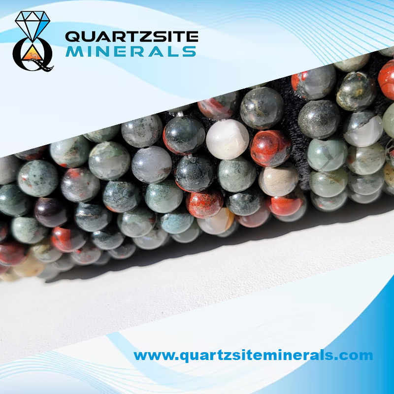 Quartzsite Minerals introduces an exquisite collection of African bloodstone round beads bracelets, crafted to embrace both aesthetic elegance and spiritual significance. Each bracelet embodies the rich cultural heritage of Africa, coupled with the inherent healing and metaphysical properties of bloodstone.