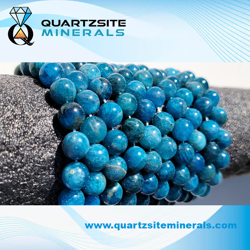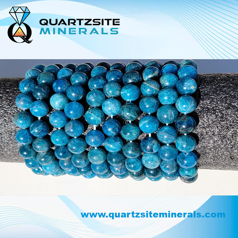 Quartzsite Minerals invites you to experience the transformative power of Blue Apatite large size beads bracelets, where beauty meets spirituality and science merges with metaphysics. Embrace the journey towards holistic well-being and self-discovery with these enchanting adornments.